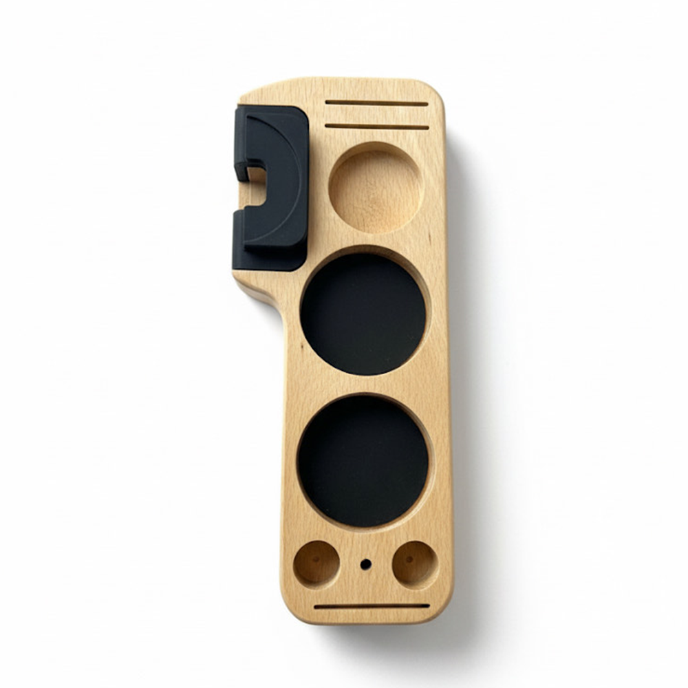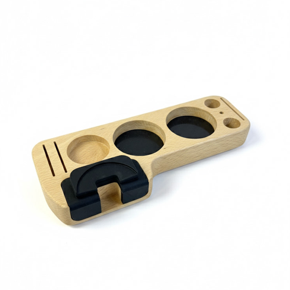استند مربعی 10تکه از جنس چوب سایز 58 میل ، دارای جایگاه قرارگیری تمپر، لولر، پرتافیلتر ، قلم آرت، پاک اسکرین، نیدل و برس نظافت و… می باشد . برای نگهداری و نظم دهنده برای تجهیزات کنار دستگاه های قهوه ساز خانگی و نیمه صنعتی و صنعتی وسیله ای کاربردی است.