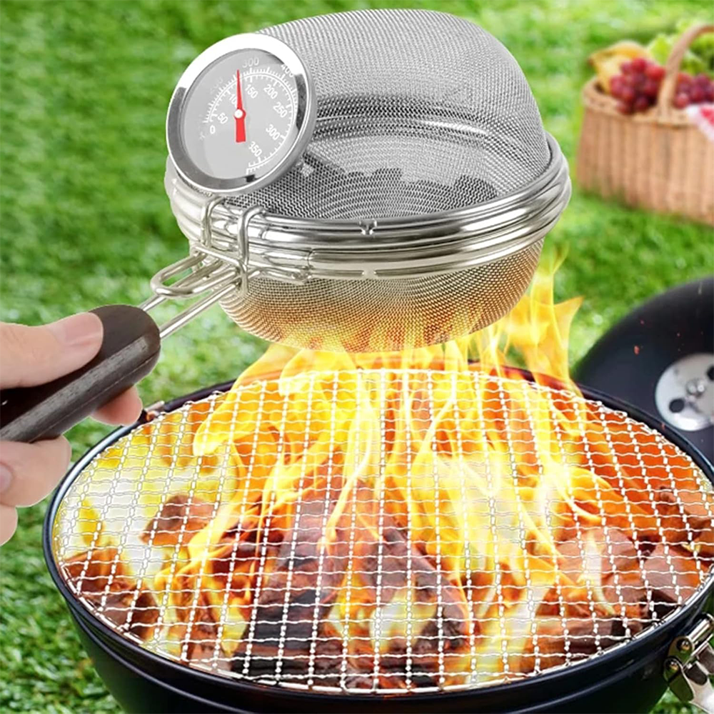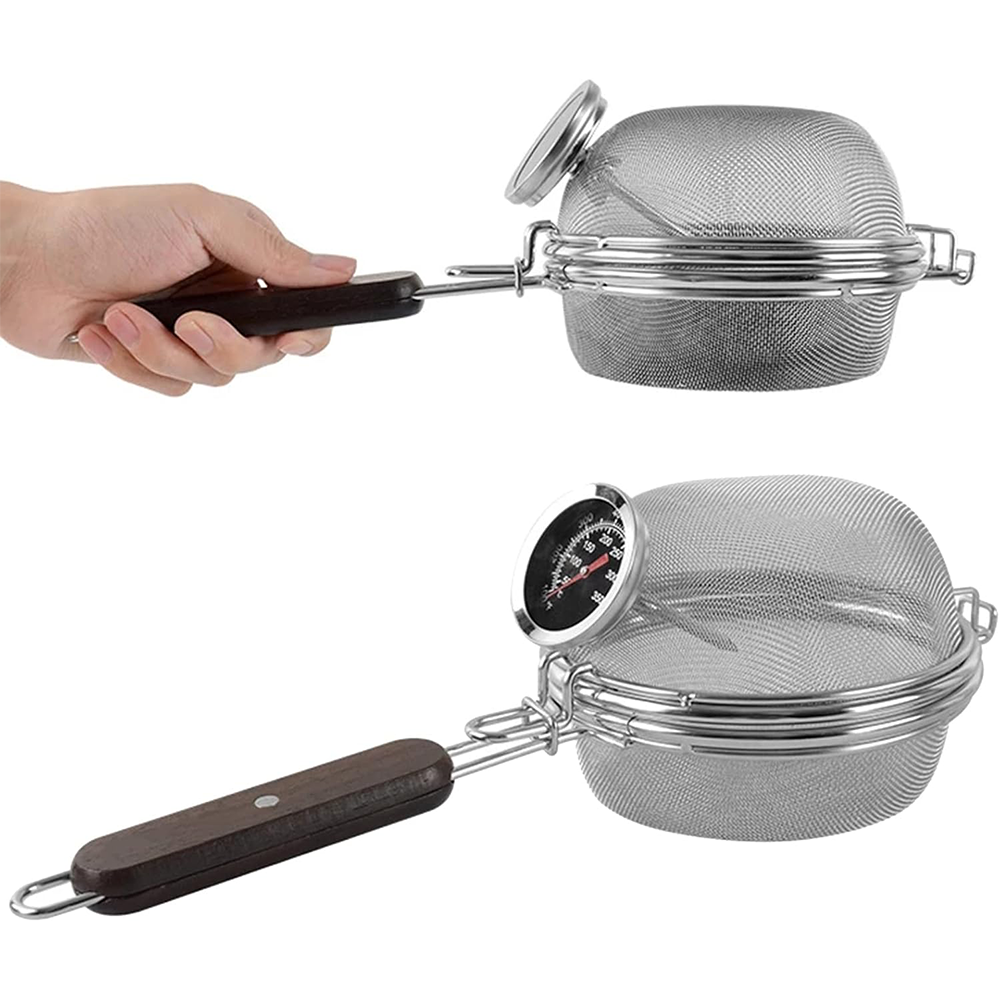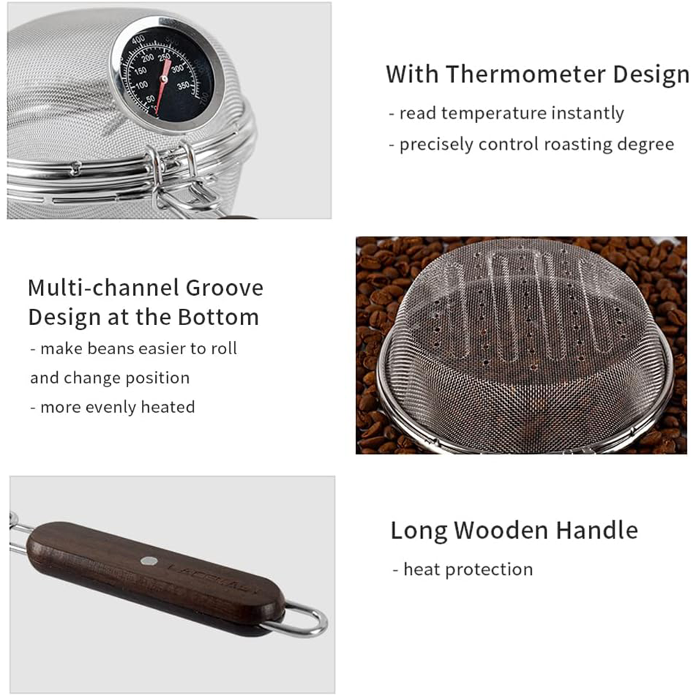 قفل توری برشتهکننده باعث میشود هنگام برشتهکردن، دانههای قهوه بیرون نریزد. شیارهای متعدد در کف توری کمک میکند دانهها راحتتر بچرخند و یکنواختتر گرم شوند. شما میتوانید دماسنج را فوراً بخوانید و تغییر رنگ دانههای قهوه را از میان توری مشاهده کنید تا بهترین نتیجه را بهدست آورید.