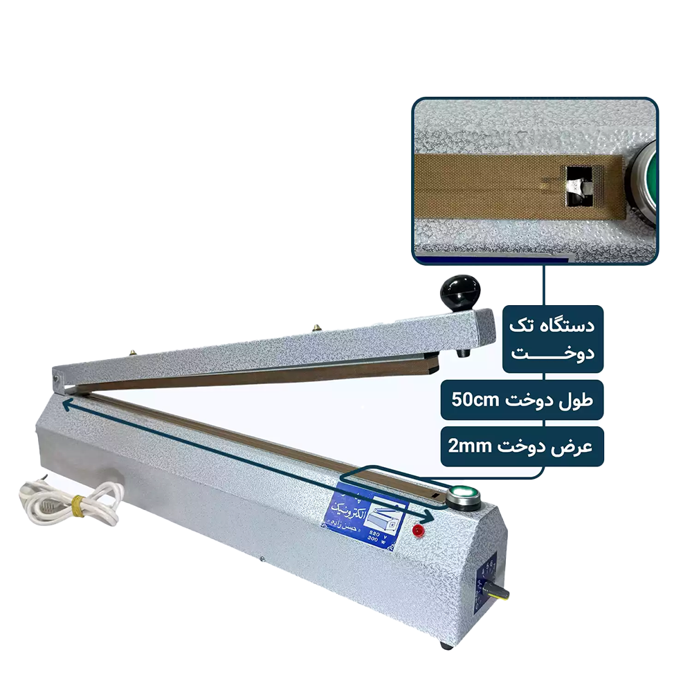 دستگاه پرس تک دوخت با طول 50 سانتی متر و عرض دوخت 2 میلی متر ابزاری قدرتمند و کارآمد برای بسته بندی طیف وسیعی از محصولات است. این دستگاه با سرعت و دقت بالا، بسته بندی را آسان و بی دردسر می کند.