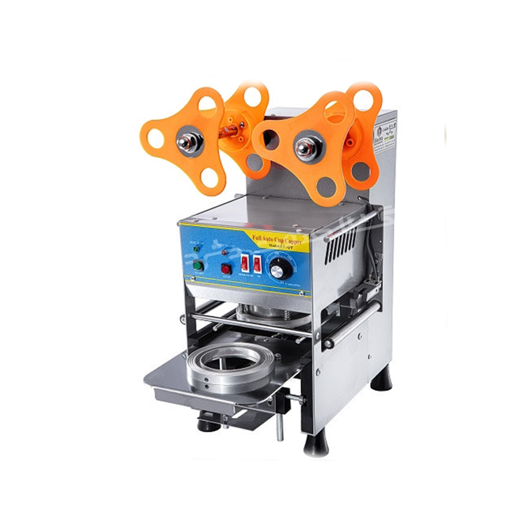 برای بسته بندی لیوان های آبمیوه در آبمیوه فروشی ها استفاده می شود که این کار مانع از ورود هر گونه آلودگی به داخل ظرف می شود .کار این دستگاه به صورت اتوماتیک می باشد و دارای شمارشگر و مجهز به چشمی هوشمند که برای رول های طرحدار به کار می رود.
