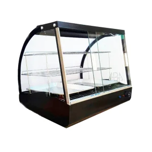 در دیسپلی تک سینی یک المنت قوی مناسب برای تولید حرارت و خشک تعبیه شده که می تواند داخل دیسپلی را برای نگهداری سمبوسه و پیراشکی ویا مواد غذایی نظیر اینهارا به صورت تازه نگهداری کرد ابعاد موجود در مدل تک سینی : طول 40 و عرض 58 و در ارتفاع 58 سانتی متری (ارتفاع با پایه ثابت 60 سانتی متر) می باشد.شیشه جلویی دستگاه خمیده شکل و ضخامت 6 میل نشکن نیست چون به حالت خمیده است ولی شیشه های بغل 5 میل از جنس سکوریت نشکن است اما مقاوم در برابر گرما ولی شیشه ها یک جداره است . دیسپلی ها بخاطر ظاهر زیبایی که دارد به منظور به نمایش گذاشتن مواد غذایی برای جلب توجه مشتریان و آگاهی از منوی غذایی کاربرد بسیاری دارد.
