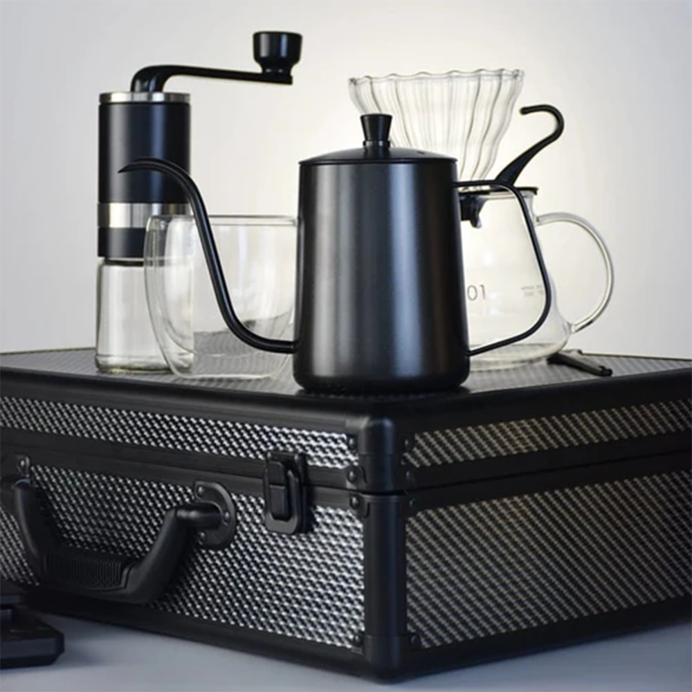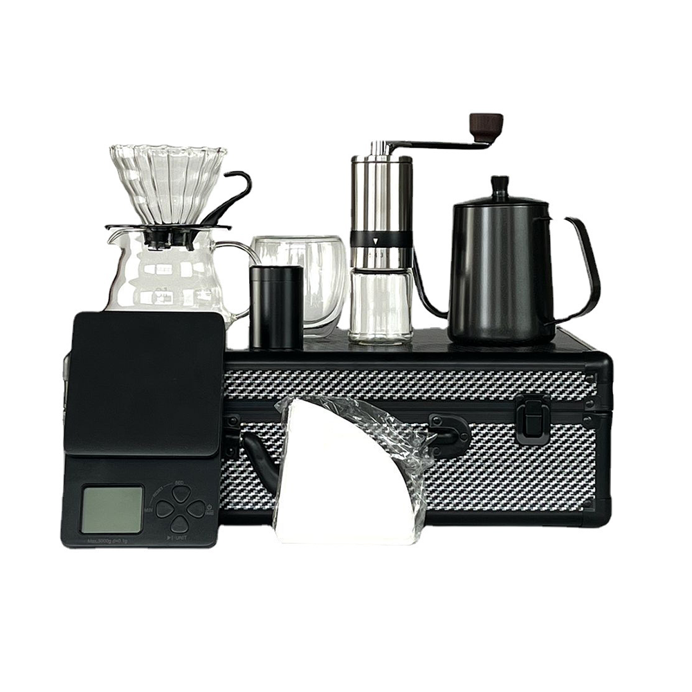 ست کامل قهوه ساز V60 تمامی ابزارهای مورد نیاز برای تهیه قهوه V60 حرفهای را در اختیار شما قرار میدهد. این ست دارای یک کتل ، یک آسیاب دستی شیشهای، فیلترهای کاغذی، فرچه تمیزکاری ، ترازو قهوه، لیوان دوجداره ،سرور ،دریپر ، باکس قهوه و یک جعبه مسافرتی برای حمل آسان است.