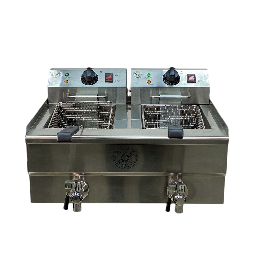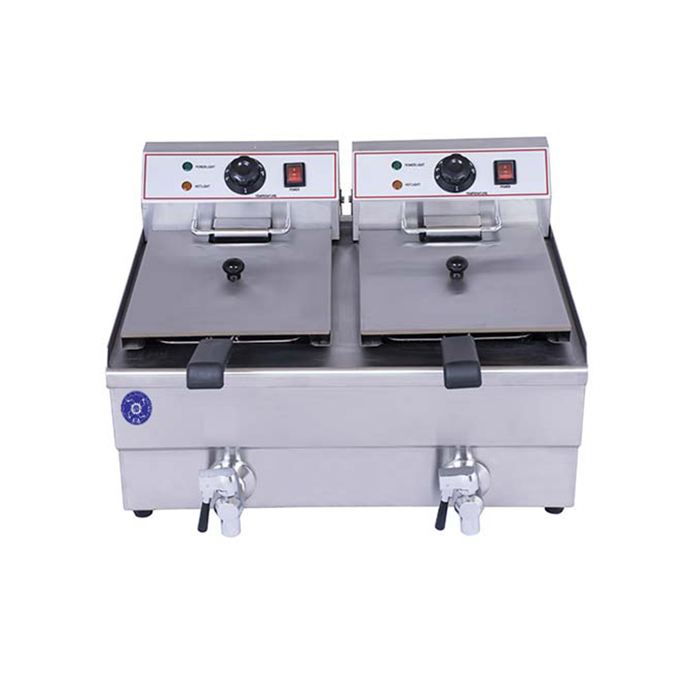 سرخ کن 2 لگن دارای لگن پرسی و یک تکه می باشد. جنس بدنه این سرخ کن برقی استیل با لگن های استیل می باشد. المنت گرم کننده در سرخکن های برقی در تماس با روغن قرار دارد. اتلاف انرژی در این سرخ کن بسیار کم است.دارای دو سبد توری با گنجایش هر مخزن ۱۰ لیتری ابعاد سرخ کن برقی ۲ لگن : ۵۷ طول * ۴۷ عرض * ۳۵ ارتفاع ( ابعاد به سانتیمتر ) می باشد. این سرخکن را حتی کافی شاپ هایی که کار های سرخ کردنی زیادی دارند بدلیل رومیزی بودن و نگرفتن جای زیاد مناسب می باشد.