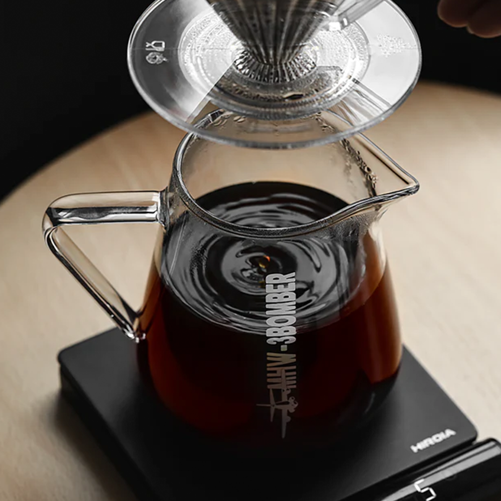 سرور 500 میلی‌لیتری بمبر از شیشه بوروسیلیکات مقاوم به حرارت ساخته شده و ابزاری کاربردی برای دم‌آوری قهوه به روش پور اُور و سرو قهوه می‌باشد. این سرور قابلیت تحمل دمای بین 20- تا 100 درجه سانتی‌گراد را داشته و ظرفیت آن مناسب برای تهیه 2 تا 4 فنجان قهوه در هر بار دم‌آوری می‌باشد و با طراحی شفاف و ارگونومیک، کنترل بهتر و دقت بیشتر در ریختن قهوه را فراهم می‌کند.