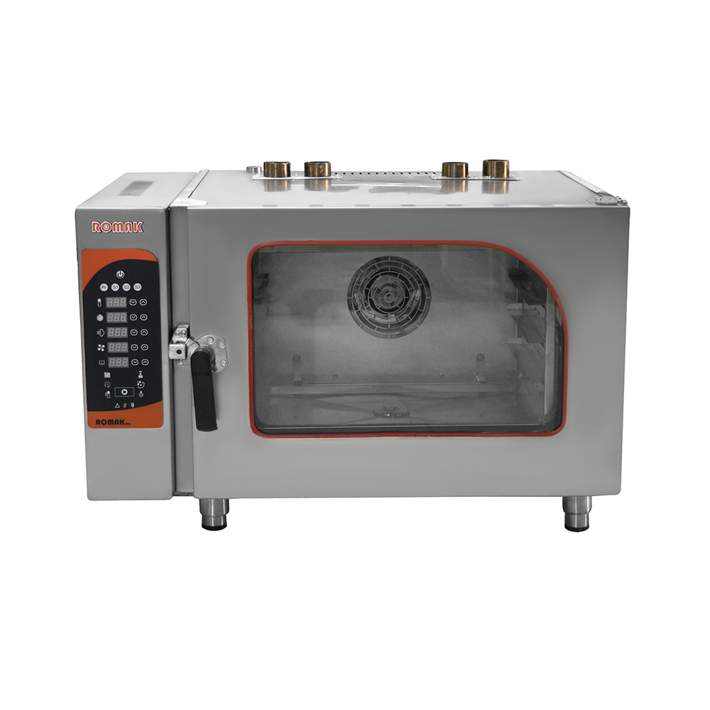 فر کانوکشن بخاردار شرکت روماک به علت داشتن بخار به راحتی برای پخت انواع نان های حجیم و نان فانتزی و کیک و شیرینی های تر فابل پخت می باشد این دستگاه به علت داشتن دکمه بخار، شما مشتری عزیز می توانید با فعال نکردن دکمه ی بخار از فر به عنوان فر کانوکشن بدون بخار برای پخت انواع کیک و شیرینی های خشک استفاده نمایید .