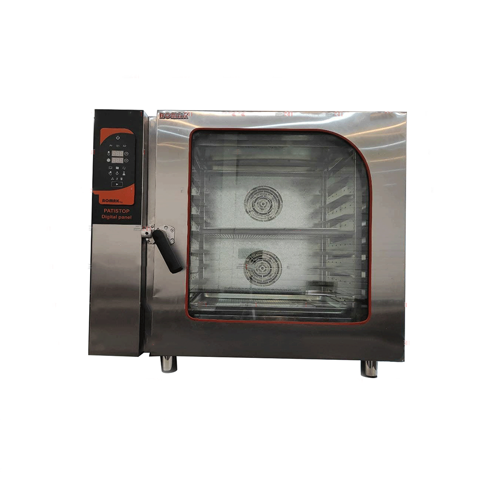 فر کانوکشن بدون بخار یکی از مهمترین تجهیزات در کارگاه های قنادی می باشد که شرکت روماک با طراحی فوق العاده توانسته حرارت این فر را غیر مستقیم از طریق لوله های پشت دستگاه وارد دستگاه کند این روند حرارت برای انواع شیرینی های خشک و کلوچه و … فوق العاده مناسب است. حرارت در همه سینی ها و طبقات یکسان و کاملا یک دست پخش می شود و به راحتی می توانید از این دستگاه در کارگاه های قنادی و شیرینی پزی و حتی در کافی شاپ ها و منازل و ….. استفاده نمود حرارت این دستگاه تا 280 درجه می باشد.