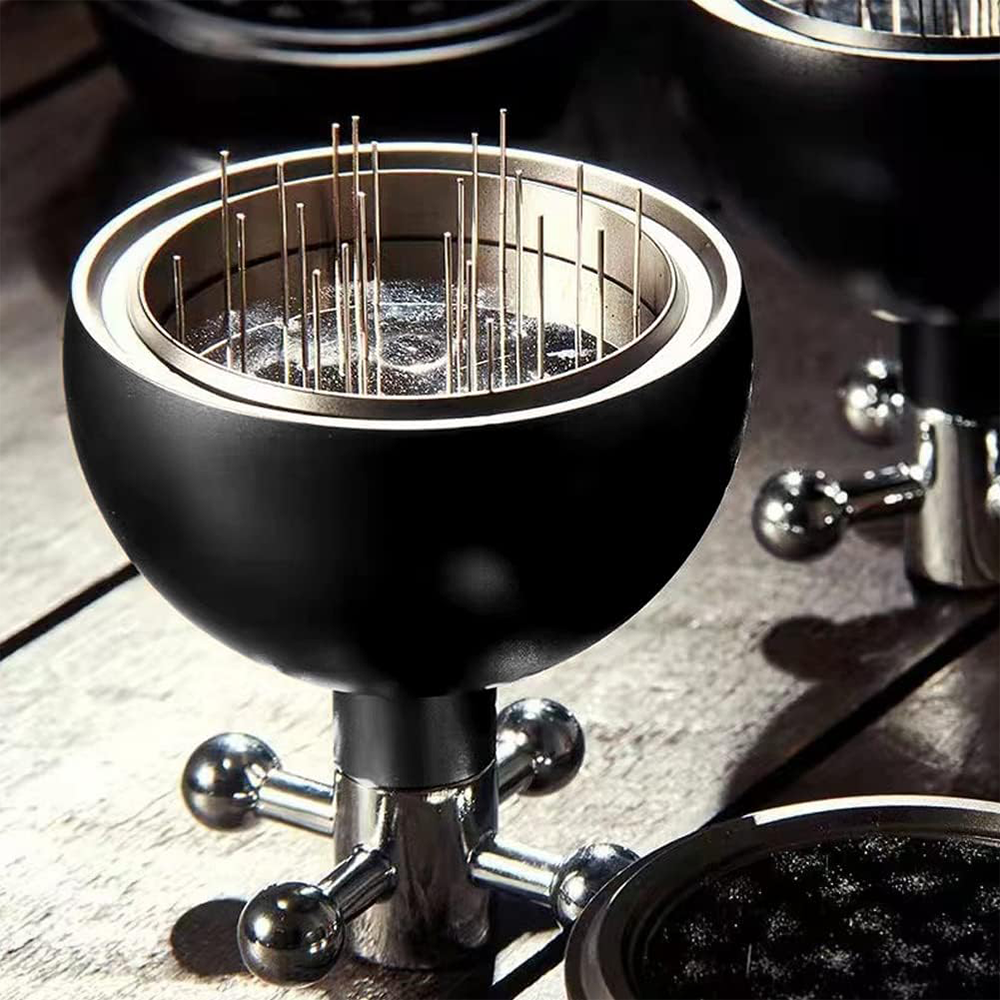 این ابزار مجهز به ۲۲ سوزن با قطر ۰.۶ میلیمتر است که با چینش علمی، به طور مؤثری گلولههای پودر قهوه در سبد پرتافیلتر را خرد میکند، اثر کانالیزه شدن را کاهش داده و فرآیند عصارهگیری را بهینه میسازد. طراحی منحصر به فرد درپوش آن ارگونومیک بوده، گرفتن آن راحت و ضد لغزش است و از پاشیدن پودر قهوه جلوگیری میکند. همچنین دستهی صلیبی شکل، استفاده را راحتتر و کمزحمتتر میکند. در پایه دستگاه یک برس کوچک تعاین ابزار منحصر به فرد از استیل ضد زنگ ۳۰۴ و آلیاژ آلومینیوم ساخته شده است که علاوه بر دوام بالا، به راحتی تمیز میشود و ضد زنگ است.
