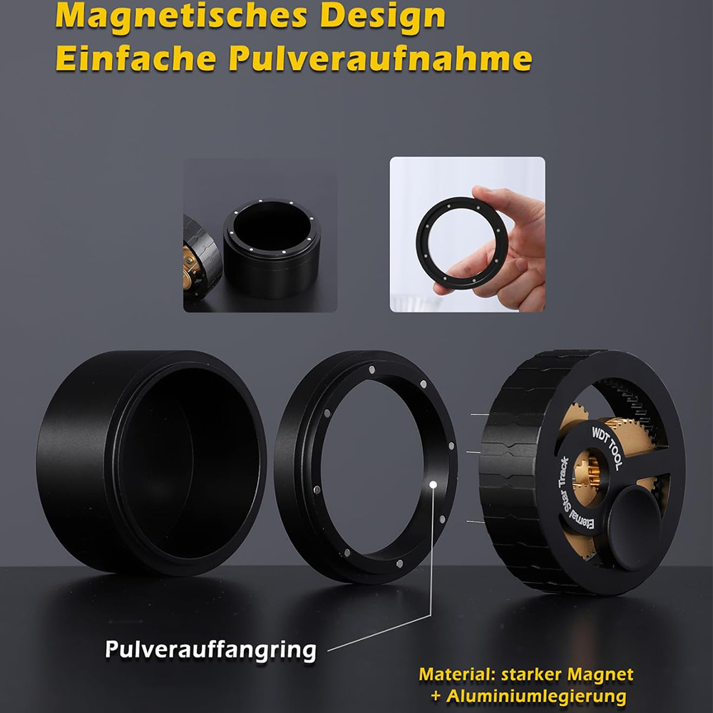 این ابزار مجهز به 10سوزن است که با چینش علمی، به طور مؤثری گلولههای پودر قهوه در سبد پرتافیلتر را خرد میکند، اثر کانالیزه شدن را کاهش داده و فرآیند عصارهگیری را بهینه میسازد. طراحی چرخدنده سیارهای چرخان و خاص آن را منحصر به فرد کرده و از آلیاژ آلومینیوم ساخته شده است که علاوه بر دوام بالا، به راحتی تمیز میشود و ضد زنگ است.
