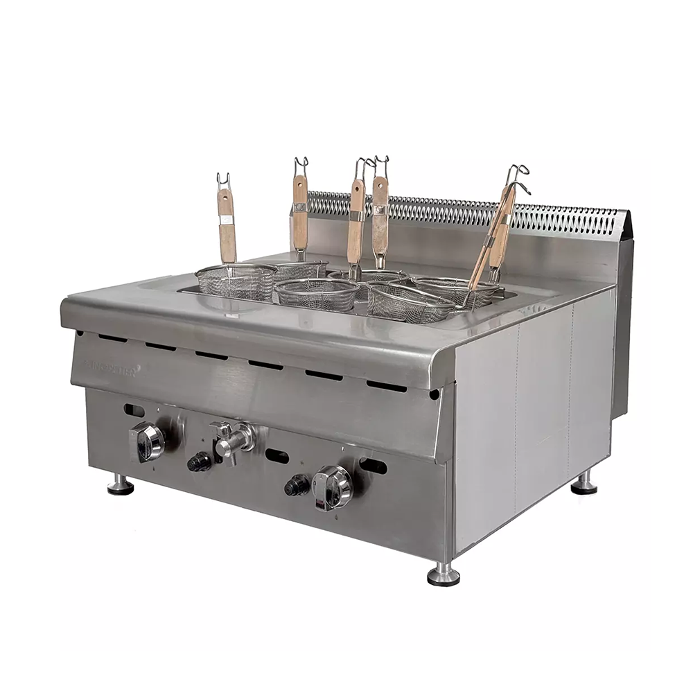 دستگاه پاستا میکر صنعتی رومیزی برای طبخ انواع مختلف پاستا در رستوران های که مشغول به پخت پاستا هستند توسط این دستگاه پاستا ساز رومیزی گازی 6 سبده مدل SOT-6 انجام می شود.سوخت مصرفی این پاستا ساز رومیزی صنعتی گازی بوده و قدرت برق آن 6KW با منبع تغذیه ولتاژ 220V و فرکانس 50Hz می باشد. جنس بدنه ی این پاستا ساز گازی صنعتی از استیل نگیر با کیفیت تولید شده و قابل استفاده در تمامی رستوران، فست فود های بزرگ و کوچک می باشد. بدنه مخزن این دستگاه پاستا ساز گازی صنعتی از ورق استیل به ضخامت 1.5 میل و بدنه بیرونی از استیل به ضخامت 1 میل ساخته شده است.