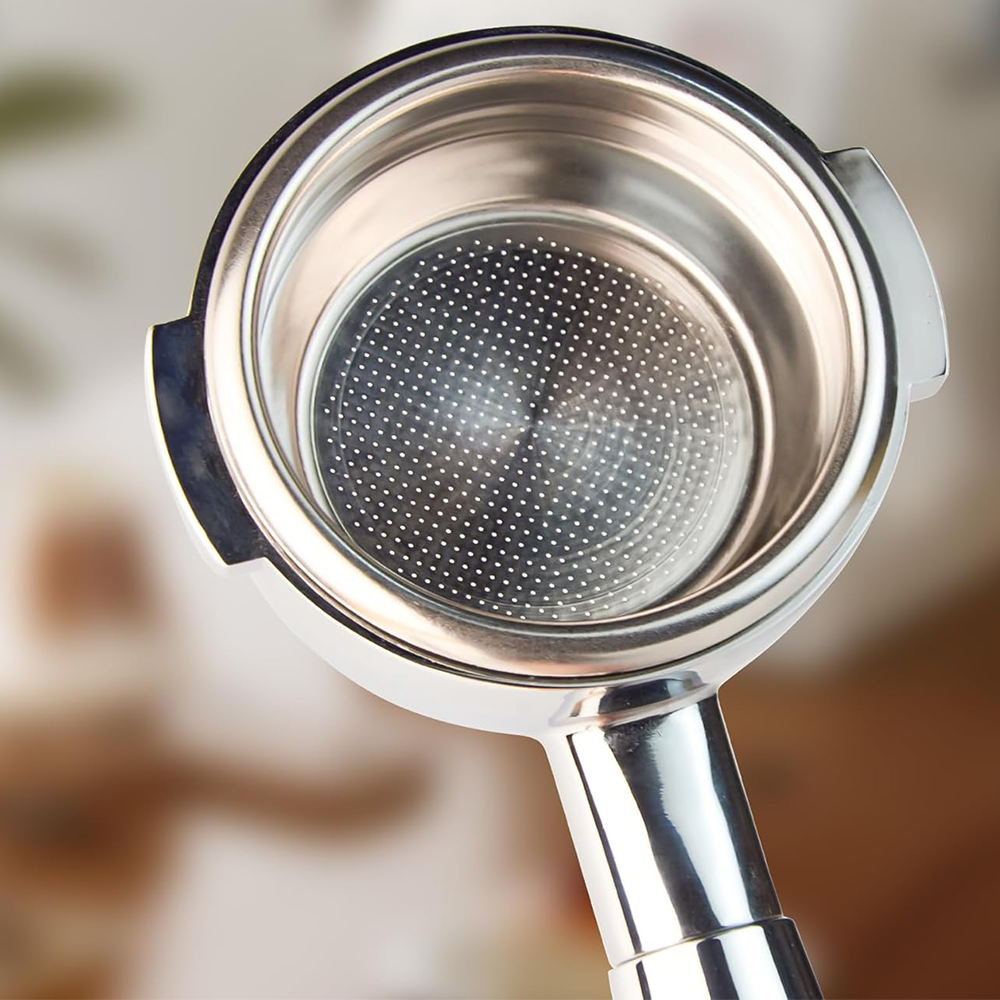 در پرتافیلتر پرتافیلتر 2پین نیکد سایز ۵۸ میلی متر دهانه و قسمت پایینی پرتافیلتر برداشته شده و سبد پرتافیلتر دیده می شود. پرتافیلتر نیکد باعث می شود تا قهوه اسپرسو مستقیما از داخل سبد پرتافیلتر به درون فنجان قهوه ریخته شود.