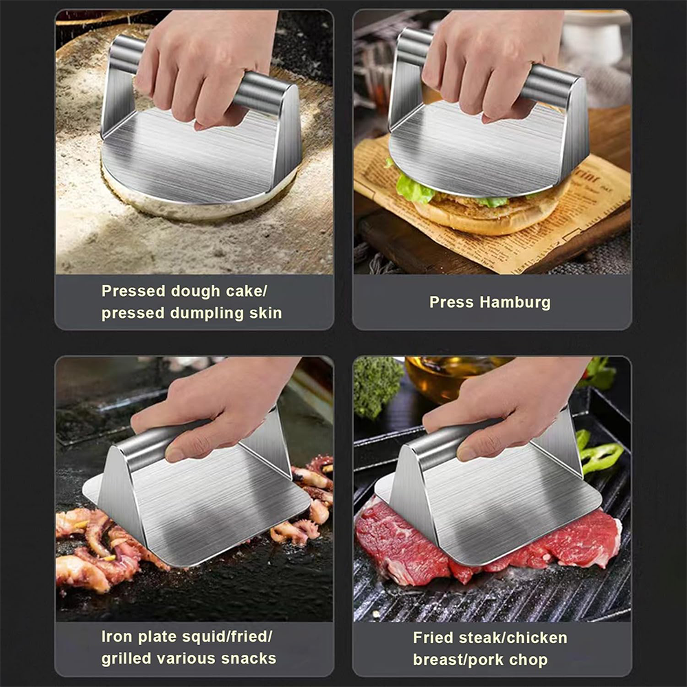 پرس برگر استیل مربع best یکی از ابزارهایی ست که در آشپزخانه صنعتی و فست فودی ها بسیار اهمیت دارد . این ابزار تمام استیل از برند بست می باشد . تا به راحتی شستشو شود و همیشه نظافت رعایت شود و همین طور از لحاظ ضد زنگ بودن و ضد خط و خش بودن بسیار قابل اعتماد می باشد . در پرس برگر استیل مربع بست دسته هایی با فاصله از صفحه ی آن قرار دارد تا با فشار دست کمی بتوان به راحتی برگرها را نازک کرد . تا به قطر مورد نظرمان برسد . به دلیل ضخامتی که در ساخت ورق های این ابزار استفاده شده است ، میتوان فشاری که به ابزار وارد می شود را تحمل کند . این ابزار با داشتن سطحی صاف و صیقل باعث می شود تا مواد غذایی به آن نچسبد و در هنگام شستشو به آسانی نظافت شود .