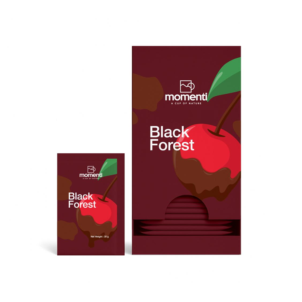 پودر هات چاکلت آلبالو (Black Forest Chocolate) مومنتی از ترکیب پودر شکلات سفید با طعم آلبالو و تکههای آلبالو تهیه شده و میتوان آن را به آسانی با آب یا شیر داغ ترکیب و مصرف نمود و یک نوشیدنی با طعمهای غنی و بافتی خامهای تهیه کرد. این محصول در بستهبندی 1050 گرمی، شامل 35 عدد ساشه 30 گرمی عرضه میشود.