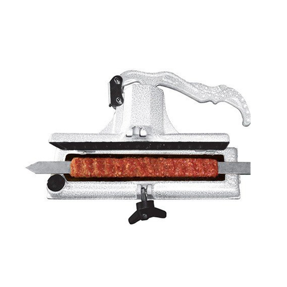 دستگاه کباب زن برقی از آلومینیوم با کیفیت ساخته شده است. این دستگاه وزن بسیار کمی دارد و کار با آن بسیار ساده می باشد، المنت موجود در این وسیله به شما کمک می کند که گوشت در داخل دستگاه نرم شده و راحت تر به سیخ بچسبد، برای کار با این وسیله کافی است دستگاه را به برق متصل کرده تا قالب گیر کباب داغ شود بعد از آن با قرار دادن گوشت و سیخ کباب توسط پدال تعبیه شده بر روی دستگاه و با وارد کردن فشار بر روی پدال می توانید گوشت را سیخ بزنید.نکته ی قابل توجه در تولید این دستگاه وجود هاشورهایی است که توسط این دستگاه بر روی کباب ایجاد شده و به کمک آن می توان کباب کوبیده ی سنتی درست کرد.