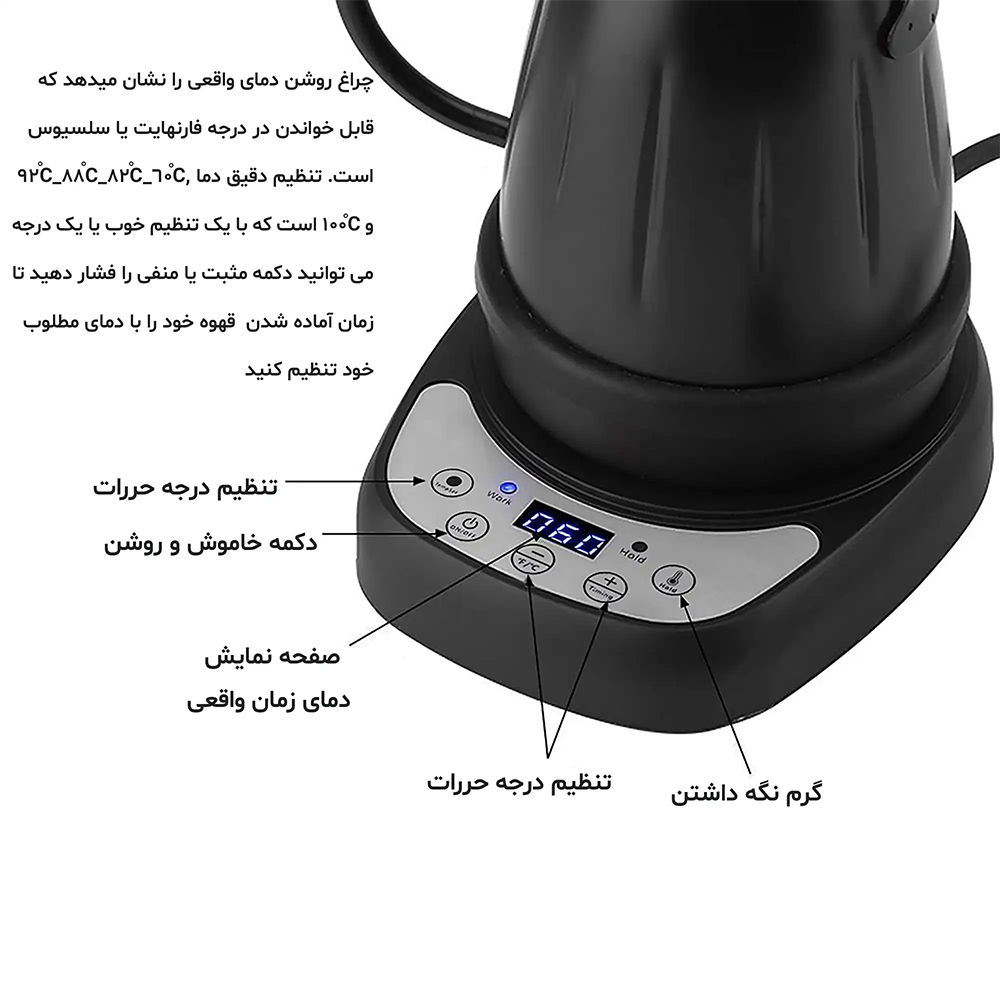 - کنترل دمای دیجیتال با نمایشگر روی پایه