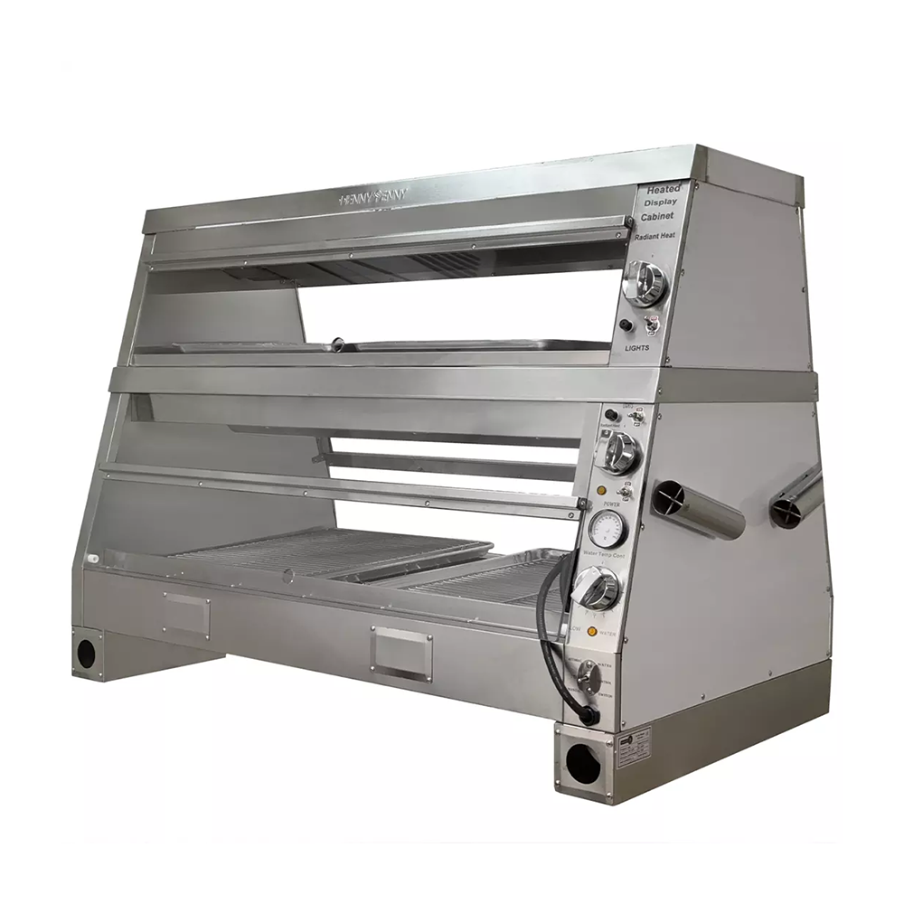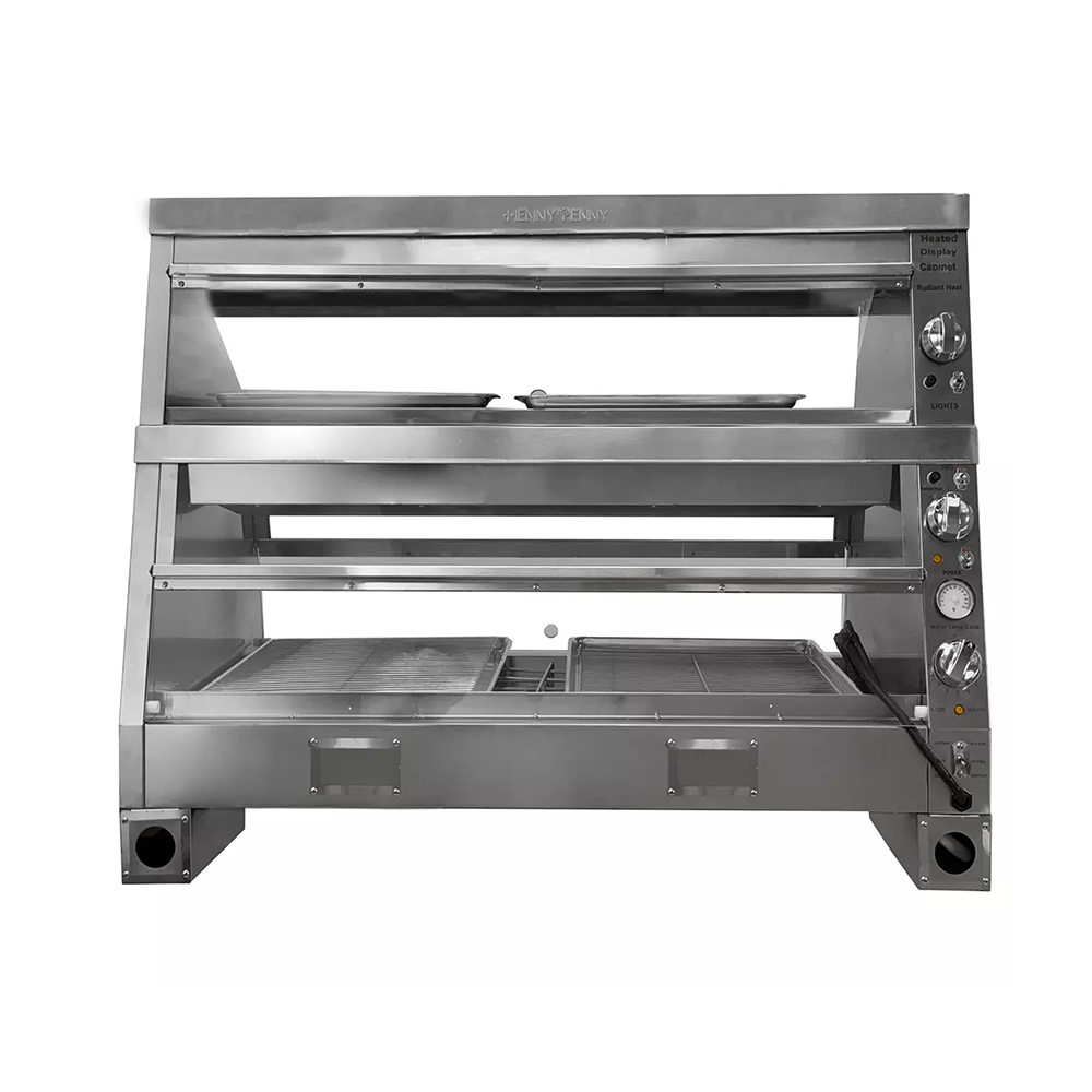 دستگاه گرمکن هنی پنی چینی مرغ سوخاری: دستگاه گرمکن هنی پنی چینی مرغ سوخاری 120 سانتی متری HENNY PENNY چینی یکی از دستگاه های بسیار ضروری جهت نگهداری و گرم نگهداشتن مرغ سوخاری در فست فودی ها می باشد، مکانیزم این دستگاه گرمخانه شیشه ای مرغ سوخاری به گونه ای طراحی شده تا گرم و مرطوب بودن این دستگاه به طور همزمان باعث تر و تازه ماندن مواد غذایی می شود همچنین این دستگاه مجهز به ترموستات ( تنظیم کننده دما داخلی دستگاه) می باشد شما به راحتی می توانید به صورت دستی تا هر میزانی که مد نظرتان است دمای این گرمکن را تنظیم نمایید.