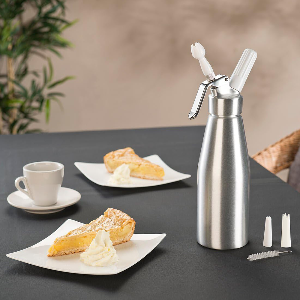 گل خامه زن دستی یک لیتری با حجم دقیق یک لیتر طراحی شده تا برای آمادهسازی دوزهای استاندارد خامه و فیلینگ کیک و شیرینی و قهوه مناسب باشد؛ همزمان قابل نگهداری و حمل بوده و فضای زیادی اشغال نمیکند. اگر دنبال راهی سریع و کمدردسر برای تزئین دستی با ظرافت حرفهای هستید، گل خامه زن دستی ۱ لیتری انتخابی مقرونبهصرفه و کاربردی است.